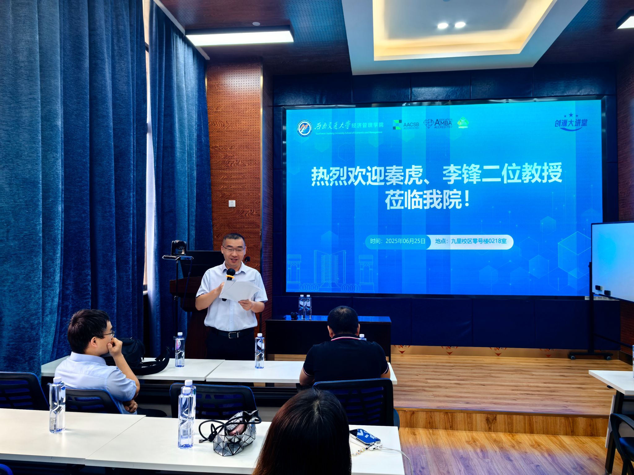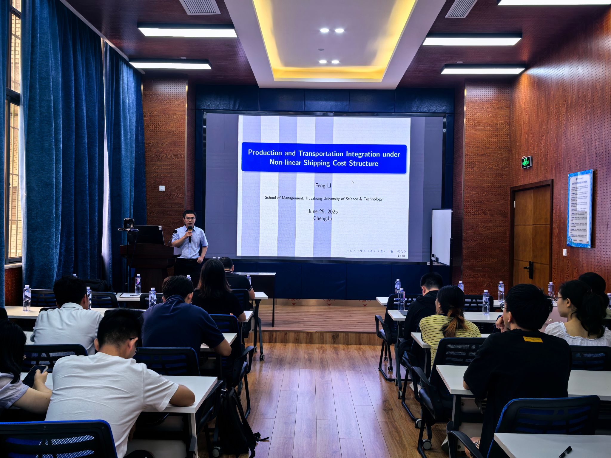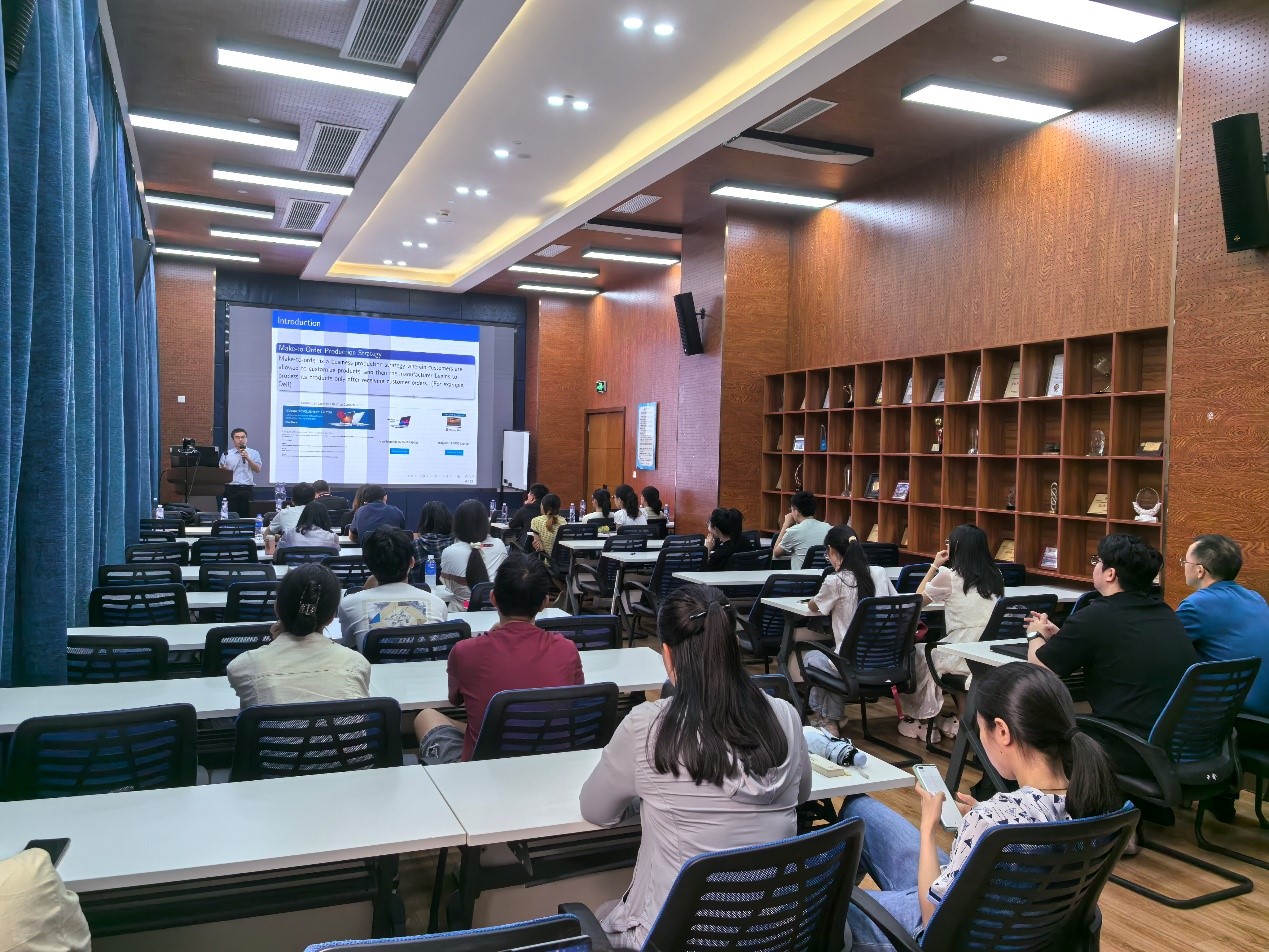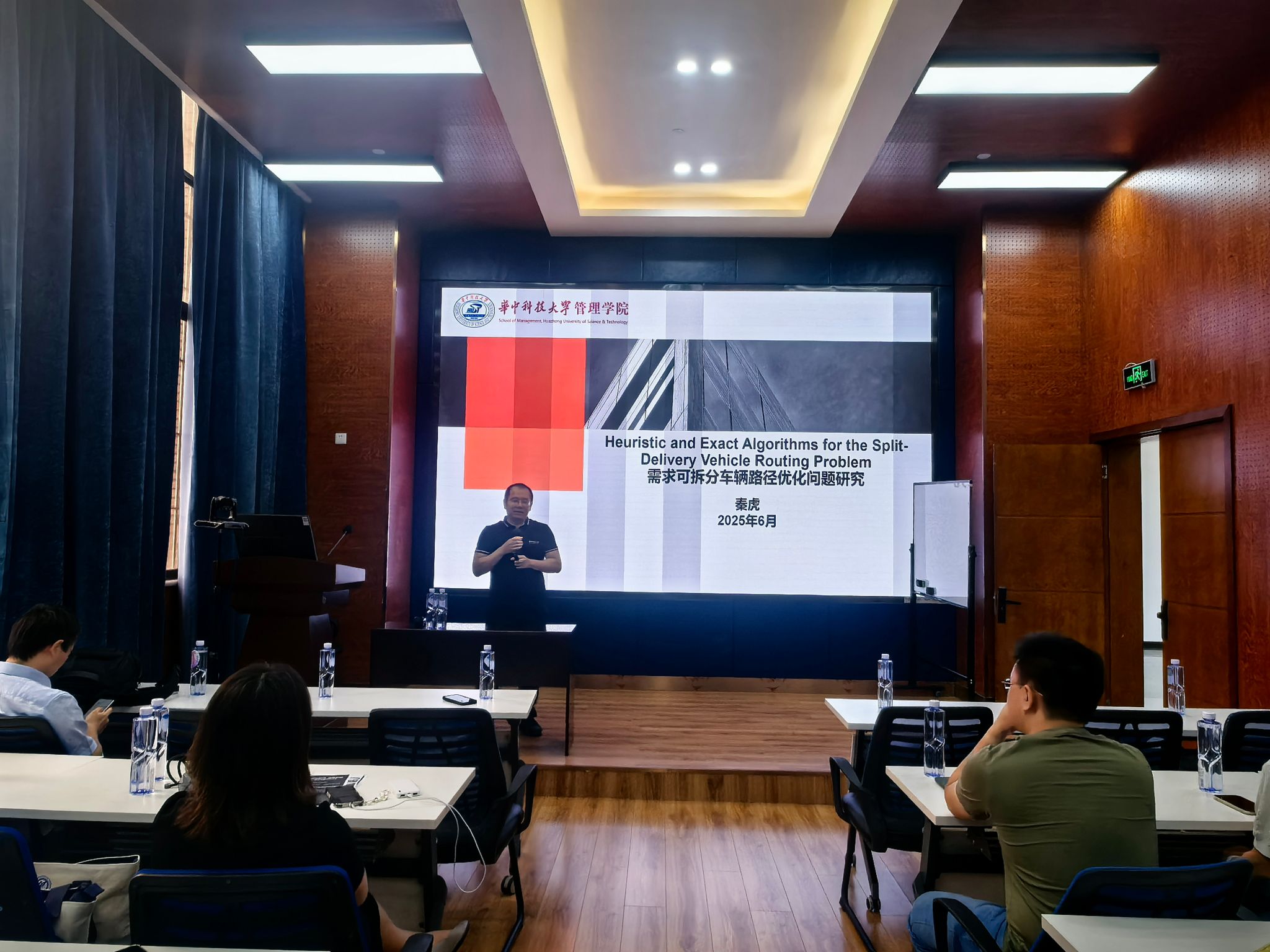 2025年6月25日上午,华中科技大学管理学院秦虎教授和李锋教授应邀莅临冰球官网,分别做题为“需求可拆分车辆路径优化问题研究”和“Production and Transportation Integration Problem”的学术讲座。本次讲座由冰球突破豪华版官方网站副院长聂佳佳教授主持,学院部分教师及研究生积极参加,现场学术氛围浓厚。讲座开始前,聂佳佳副院长简要介绍了秦虎教授和李锋教授的学术背景与研究成果,对两位教授的到来表示热烈欢迎和诚挚感谢。