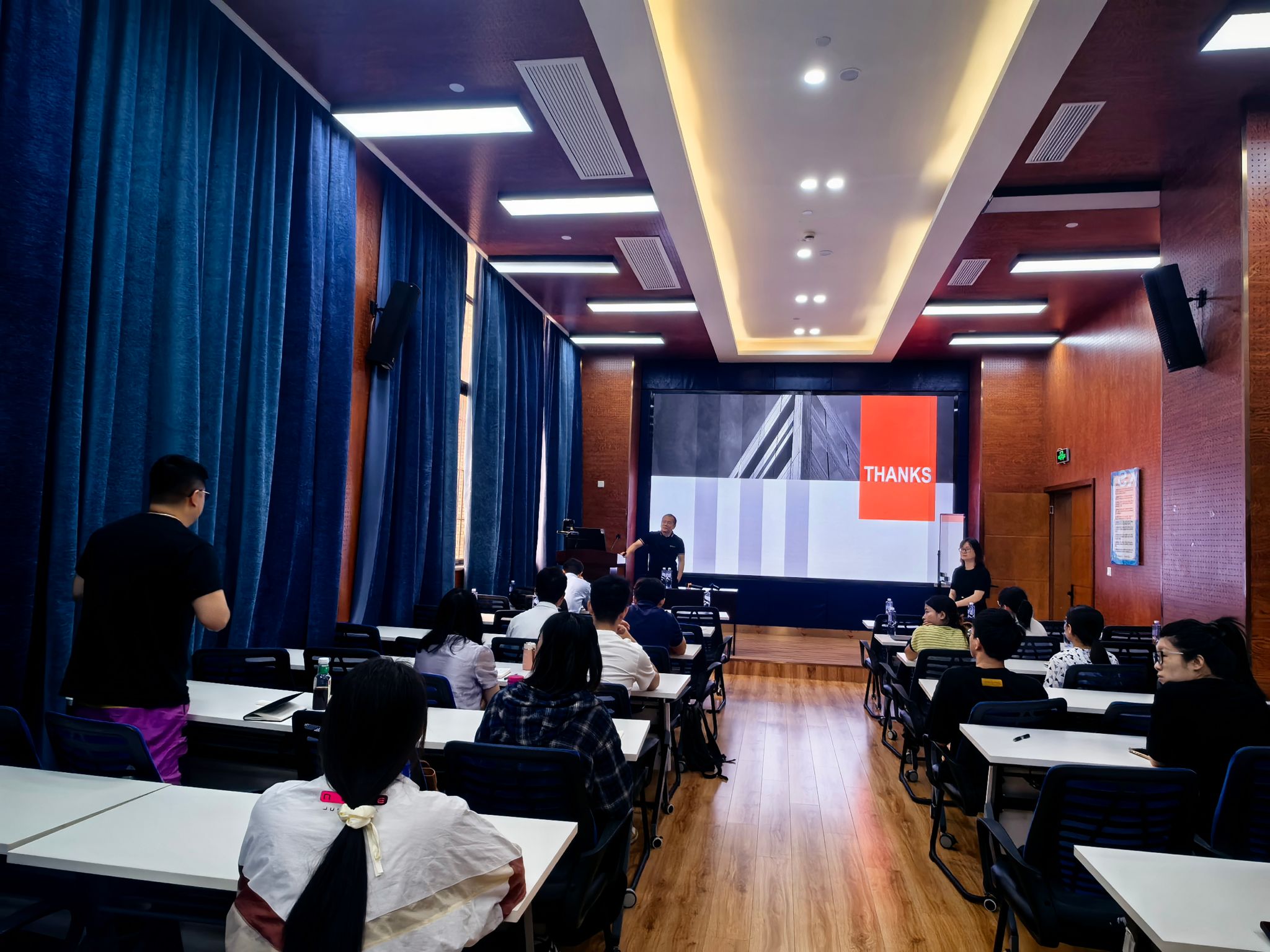 在互动环节,现场师生踊跃提问,围绕算法设计、实验过程中的问题、期刊发表、问题挖掘与建模等问题展开了深入交流。秦虎教授和李锋教授耐心细致地回应了师生的提问,并进一步分享了自己在相关领域的探索与思考,介绍了具体研究过程中的技术细节与挑战。