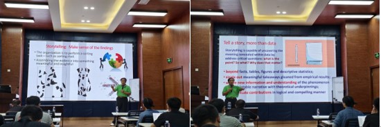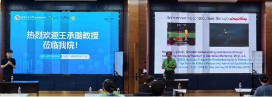 2025年6月25日下午在九里校区零号楼0218室,美国纽黑文大学商学院王承璐教授应邀为冰球官网师生开展题为“Demonstrating contributions through storytelling-From editor's perspective”的讲座,深入探讨什么样的研究拥有研究贡献与如何从数据中挖掘出有趣故事。讲座由冰球突破豪华版官方网站副院长马锋教授主持,吸引了众多师生参加。