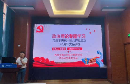 本科经贸类党支部于7月7日在J0218教室举办了学习习近平总书记在庆祝中国共产党成立100周年大会讲话——冰球突破豪华版官方网站本科经贸类党支部政治理论专题学习,由党支部书记陈建奇主讲,支部的全体党员及部分积极分子参加了专题学习会议。