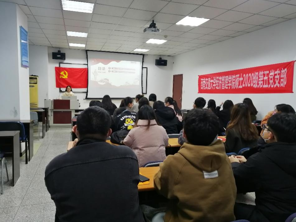2021年11月18日晚19:30,冰球突破豪华版官方网站硕士2020级第五党支部于0号教学楼0317开展十九届六中全会学习和党员应知应会答题活动,本次会议由支部成员刘柯同志带领全体成员进行学习,出席会议的有支部内党员、预备党员和积极分子。