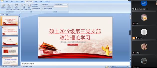 2021年4月27日晚19:30,冰球突破豪华版官方网站硕士2019级第三党支部于腾讯会议进行了主题为“党在社会主义革命和建设时期(1949-1978)的历史”的理论学习。学习内容主要分成两个部分,第一部分为“党在社会主义革命和建设时期(1949-1978)的历史”,第二部分为“习近平在清华大学考察时的重要讲话精神”。支部全体成员参与会议,学习由张天怡、谢洁同志主持。