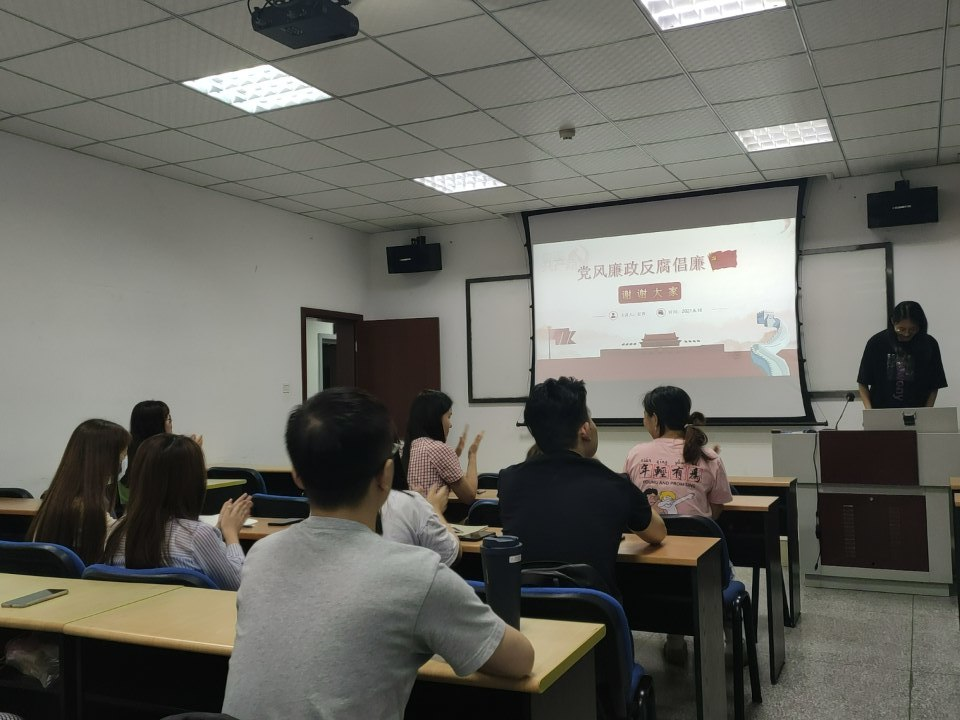 党风廉政建设是一项厚植党的执政根基的工程,关乎党心民心。党风廉政建设和反腐败斗争关系党和国家的生死存亡。党风、政风的好坏,事关人心向背。2021年6月9日(星期三)20时40分,冰球突破豪华版官方网站硕士2020级第一党支部在九里校区0304教室,开展了“党风廉政反腐倡廉”专题学习组织生活会。本次会议由支部内的任茜同志进行主讲。支部内党员、积极分子参会。