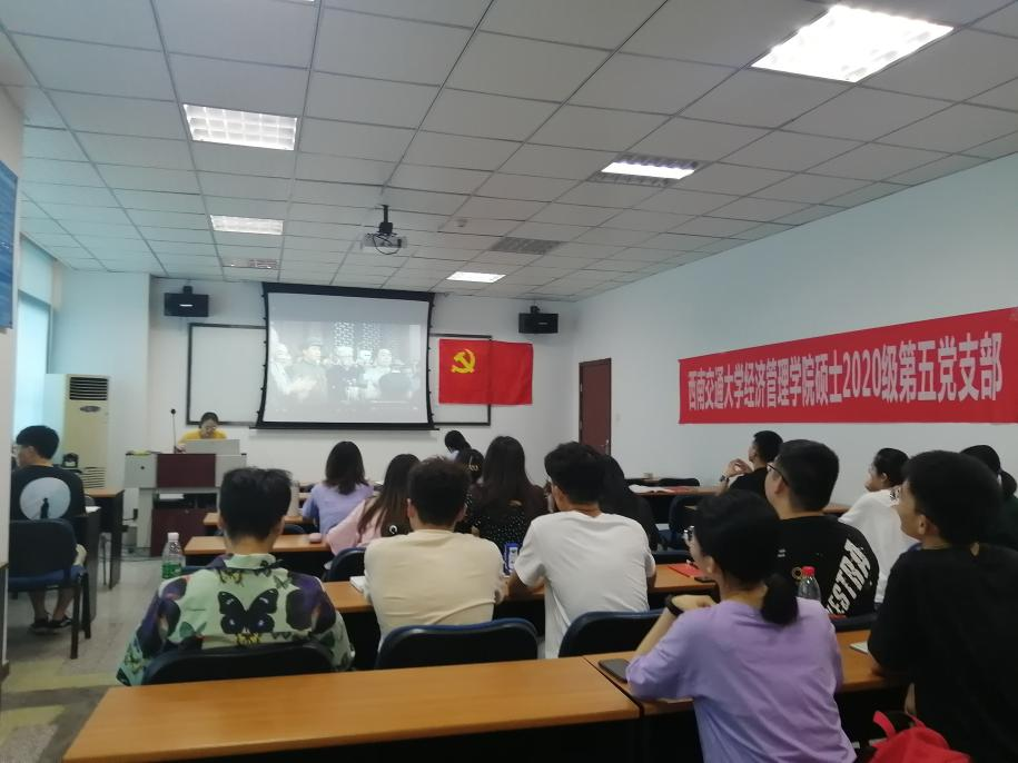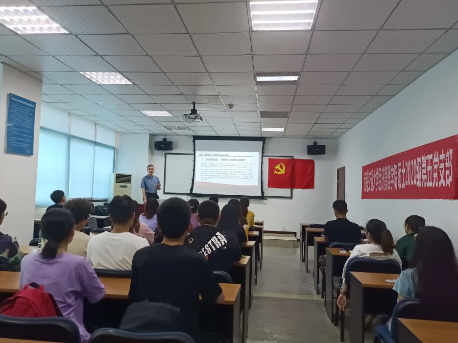 2021年5月14日下午16:00,冰球突破豪华版官方网站硕士2020级第五党支部开展党史、新中国史专题学习。本次会议由两部分组成:学院党委书记王斌为支部讲授“从百年大党迈向百年强党”主题党课、支部成员何汶昱带领支部成员学习新中国史。出席会议的有学院党委书记王斌及支部内党员,预备党员和积极分子。