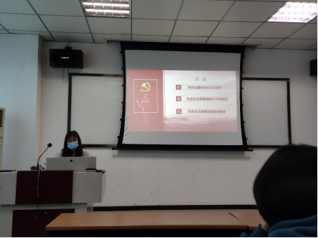 接下来,赵燕同志分六个时间段对社会主义五百年的历史进行了梳理与回顾。分别是空想社会主义产生和发展、马克思恩格斯创立科学社会主义理论体系、列宁领导十月革命胜利并实践社会主义、苏联模式逐步形成、新中国成立后我们党对社会主义的探索和实践和我们党作出进行改革开放的历史性决策、开创和发展中国特色社会主义六个部分。