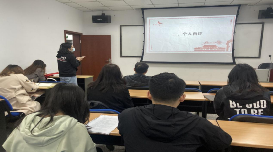 接下来会议进行到党员自评与党员互评,各位党员对自己上学期以来的表现从不同方面进行了自我总结,查找自身不足,并为自己提出了进步目标;此外,在党员互评阶段,党员之间也进行了诚挚的互提建议,互指不足,让党员之间相互学习的氛围更加浓厚