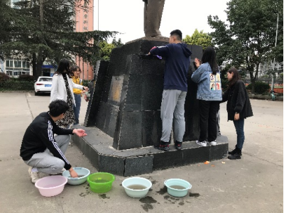 通过此次清理雕塑的党日活动活动,不仅为学校师生提供了一个温馨、 干净、清洁的校园生活环境,同时,也增强了同学们保护环境,做校园清洁卫士,树立良好志愿者榜样的意识。