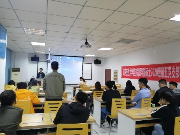 为缅怀先烈,追思英雄,弘扬新时代英烈精神,清明节前夕,2021年3月31日晚19时,中共冰球突破豪华版官方网站硕士2020级第五支部委员会于九里校区零号教学楼0302教室开展了“清明祭英烈”专题组织生活会。会议由林良宇同志主持。