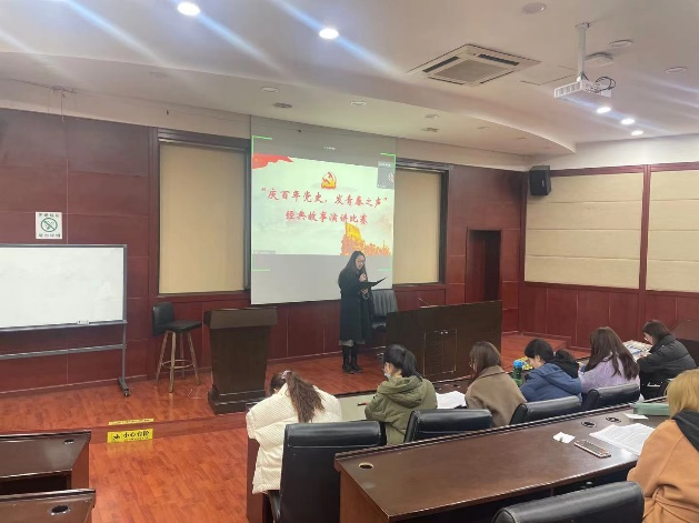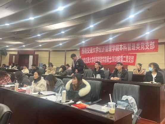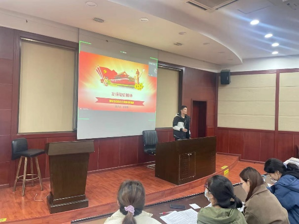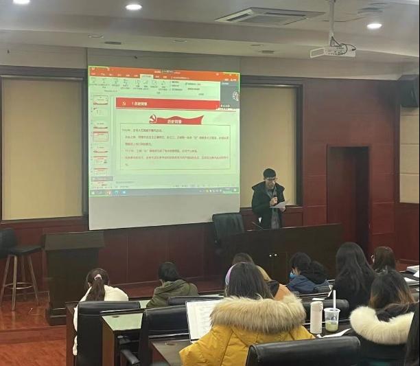 习近平总书记在党史学习教育动员大会上的讲话指出:“我们党的历史,就是一部不断推进马克思主义中国化的历史,就是一部不断推进理论创新、进行理论创造的历史。”在建党百年之际,回望总结我们党推进马克思主义中国化的历史进程,深刻把握马克思主义中国化百年历程的创新成果及基本经验,是继续推进马克思主义中国化,发展当代中国马克思主义、21世纪马克思主义的必然要求。因此,为了引导党支部同志们进一步学习马克思主义理论,深入理解马克思主义的精神实质和思想精髓,2021年12月16日下午,冰球突破豪华版官方网站硕士2020级第二党支部联合本科管理类党支部在九里校区零号楼0224教室举办“庆百年党史,发青春之声”经典故事演讲比赛。本次演讲比赛由硕士2020级第二党支部官慧同志主持,到场老师有贾佳、苏扬以及张媛媛。