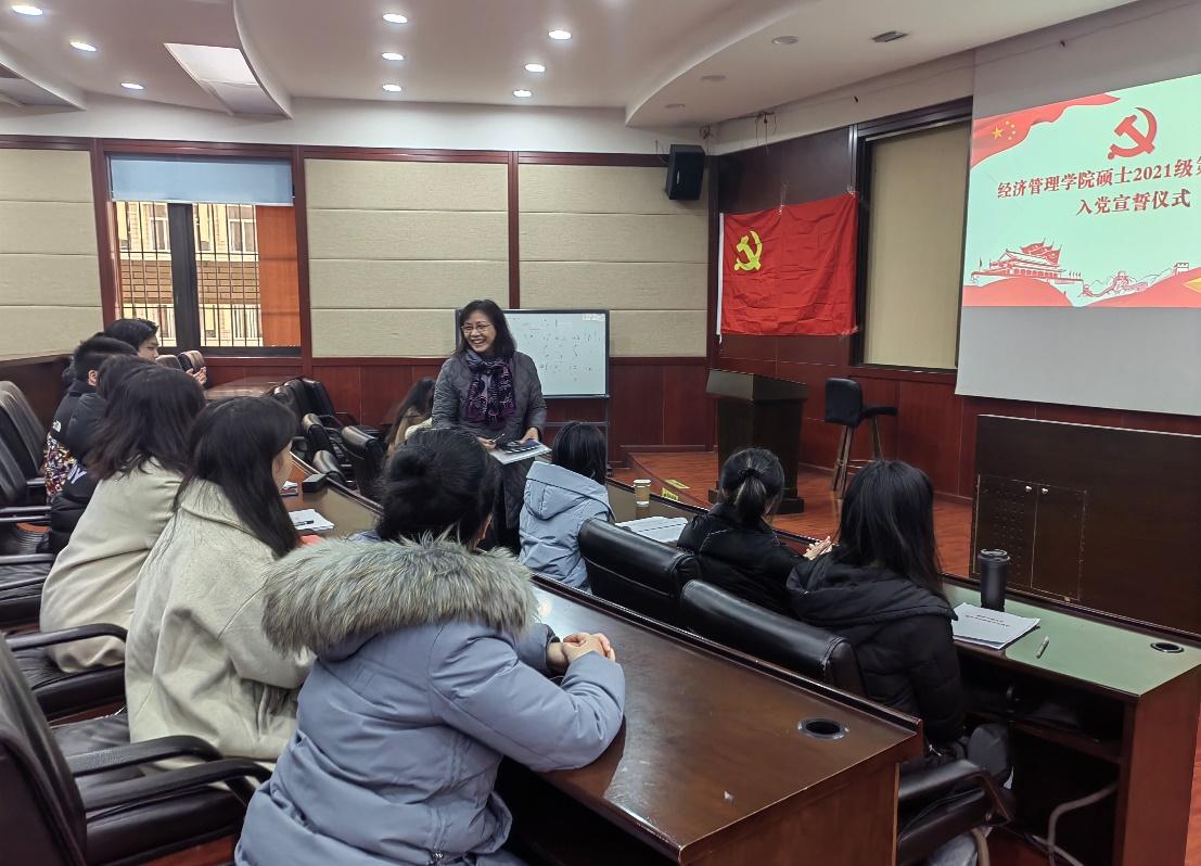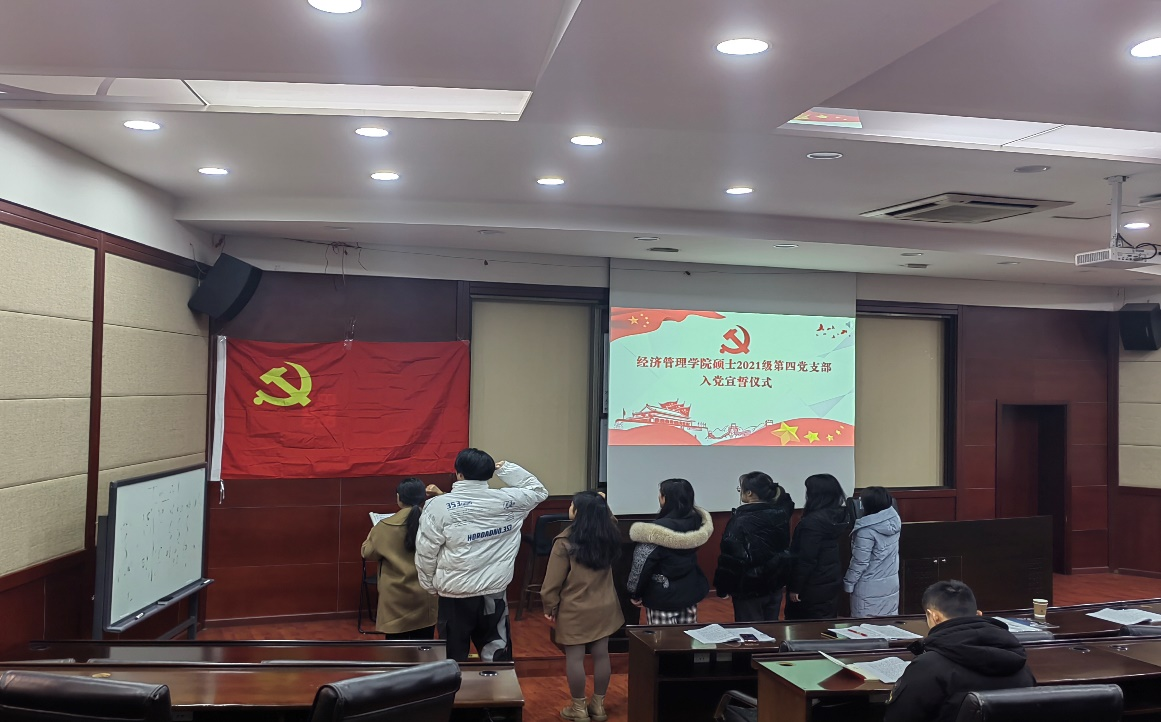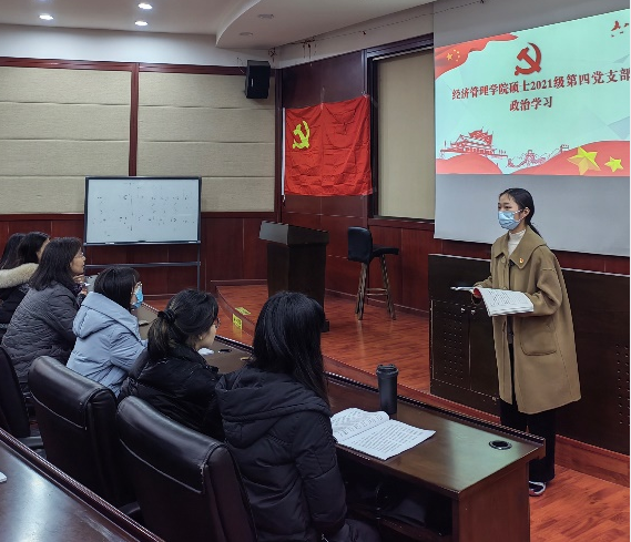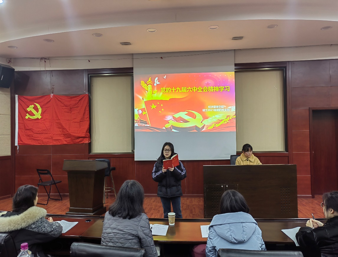 2021年12月30日下午三点在九里校区0224教室,冰球突破豪华版官方网站硕士2021级第四党支部开展了“党的十九届六中全会精神”的政治学习活动及预备党员入党宣誓仪式。活动由党支部书记吴欣悦主持,校巡视组陈燕灵老师出席指导,党支部共30人全部参加了此次活动。