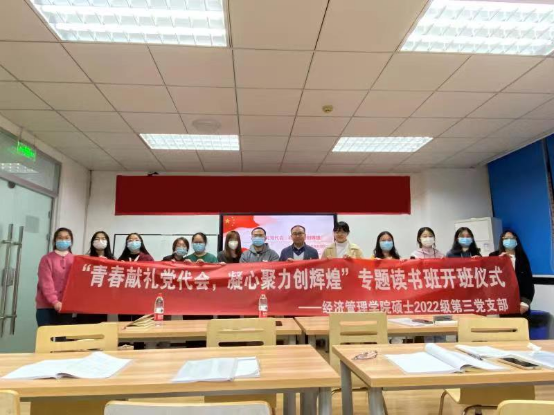 冰球突破豪华版官方网站坚持以习近平新时代中国特色社会主义思想为统领,深化“党建聚合力”工程和“政治聚力”“思想聚魂”行动;深入学习贯彻落实学校第十五次党代会精神,把全院师生的思想统一到党代会精神上来,弘扬“竢实扬华、自强不息”的交大精神,推动学院党建高质量发展。 2022年10月28日下午,冰球突破豪华版官方网站硕士2022级第三党支部举办“青春献礼党代会 凝心聚力创辉煌”专题读书班开班仪式。邀请冰球突破豪华版官方网站党委副书记杨宏毅莅临指导。