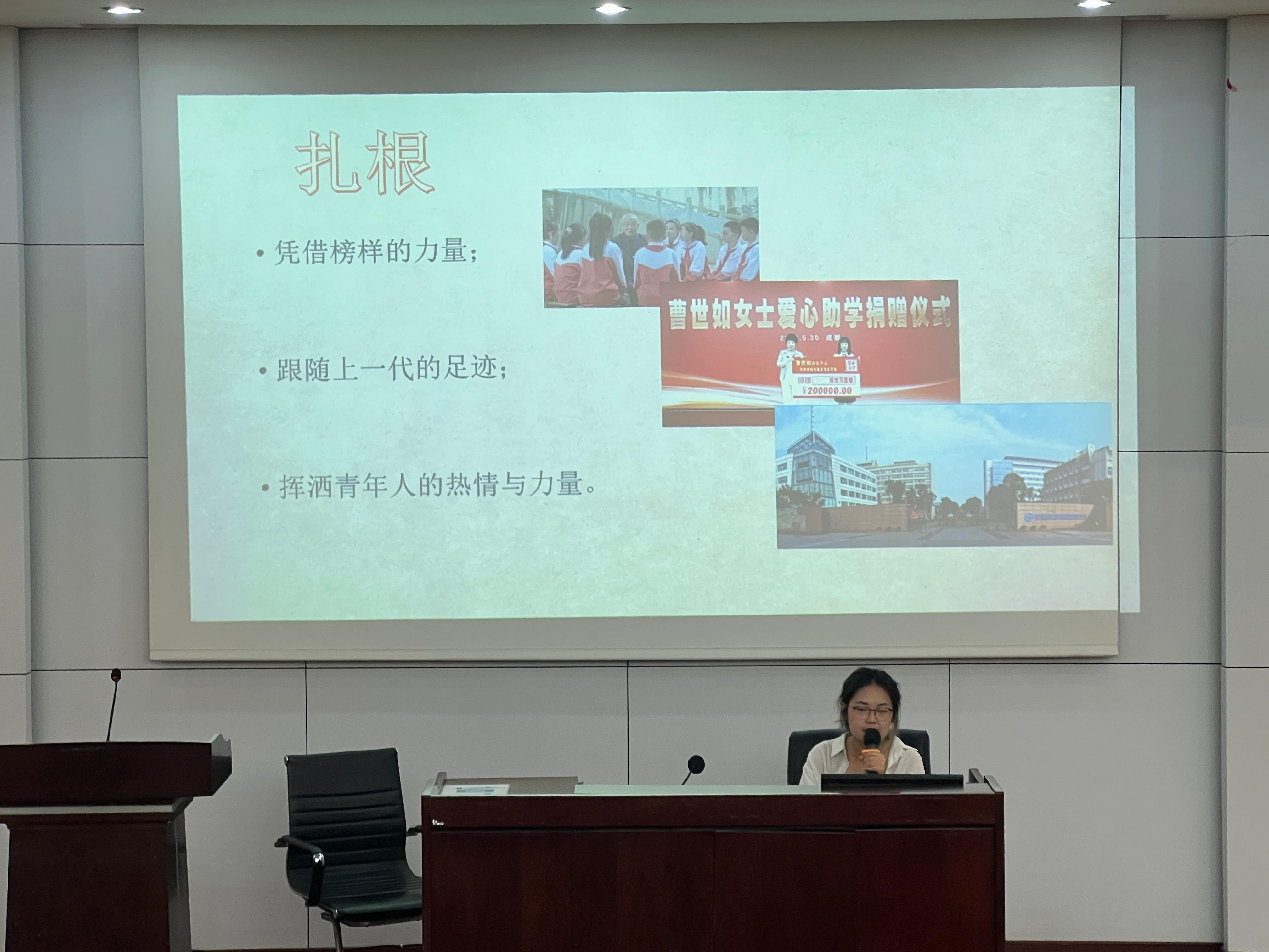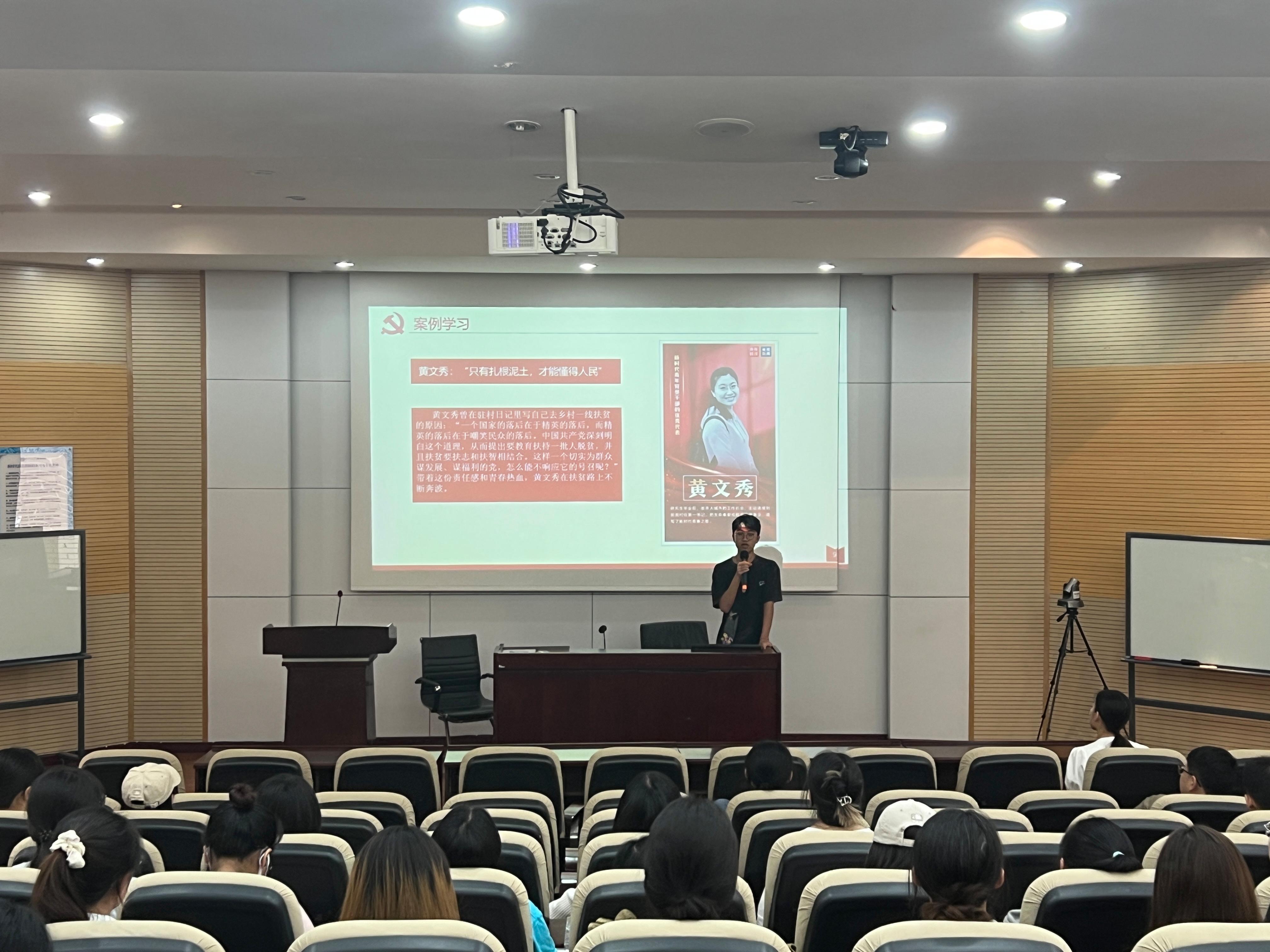 此外,白芯宇同志还为大家分享了观看学习“传承红色基因,争当青年先锋高校”宣讲会(第二批次)的学习体会。她表示虽然四位宣讲人来自不同的时代,但他们从不同维度给我们带来了不一样的启发。她将此次宣讲的主题归结为“扎根”二字。当代青年只要肯踏踏实实扎根于自己的理想志向,就可以把自己的人生活得精彩。