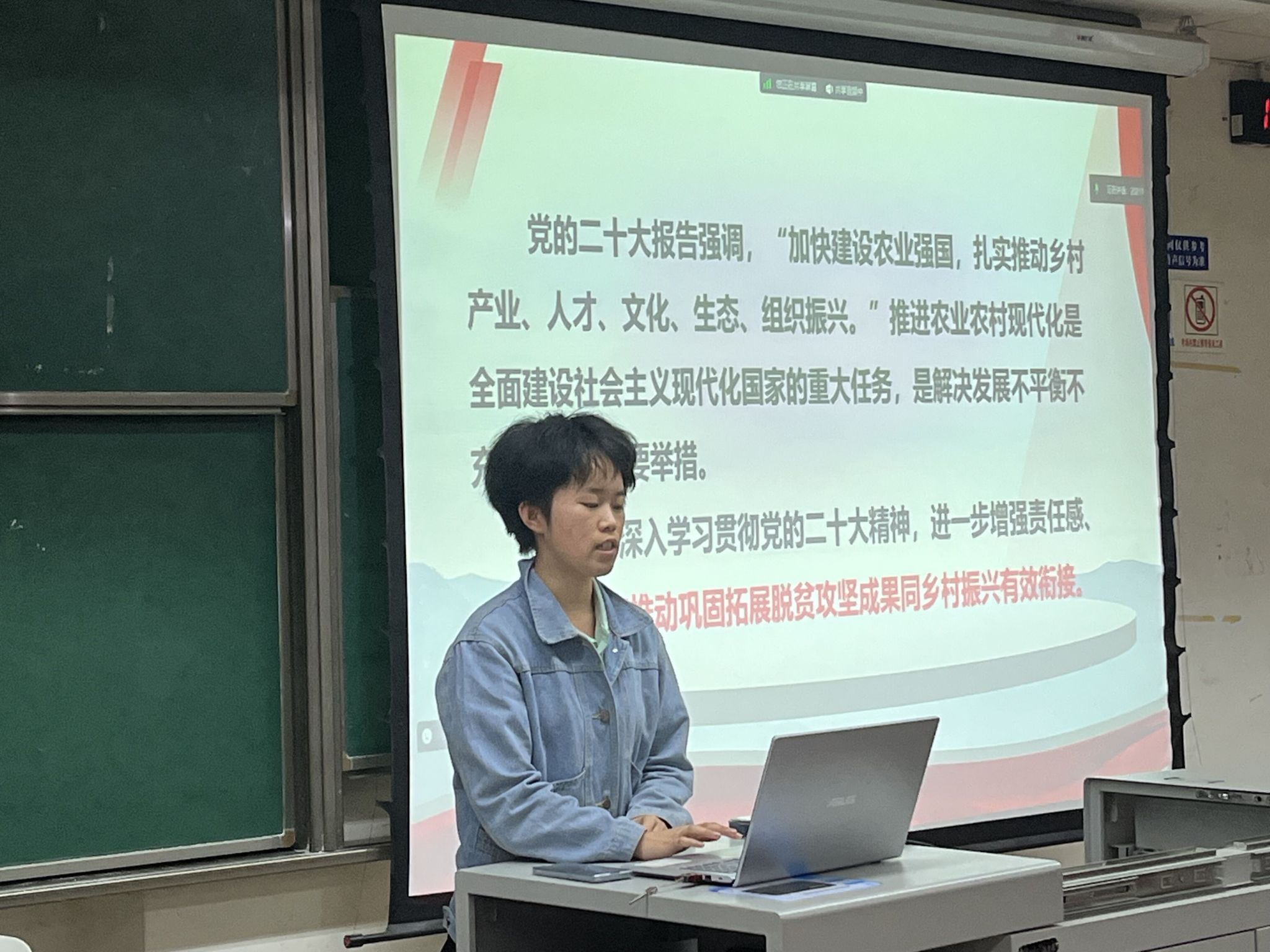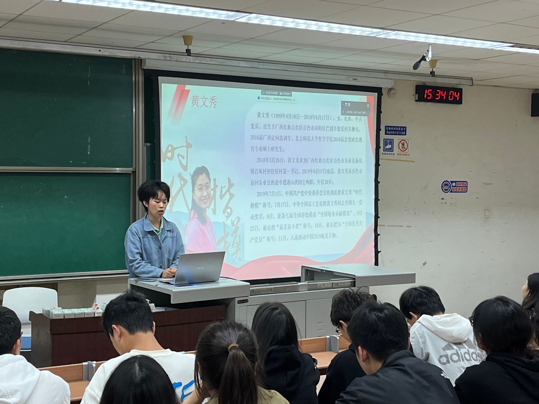 接着,冰球突破豪华版官方网站赴百坭村社会实践队的汤权同志从在百坭村的见闻、文秀书记的工作事迹、文秀精神的传承等方面进行了分享。在一年的时间里,黄文秀书记通过不计其数的走访调研,找准发展方向,让百坭村焕发新生。实践队员走进文秀书记工作的地方,看到墙上村里的孩子们用稚嫩的字体写下的“文秀姐姐,我们想你了”,纷纷为之动容。汤权同对大家说,黄文秀同志一生不忘初心、执着坚守、心系村民、甘于奉献,作为新时代的接班人,我们应当学习其事迹,传承其精神,自觉扛起使命担当,在乡村振兴的道路上发光发热,将青春热血镌刻在时代的丰碑上。