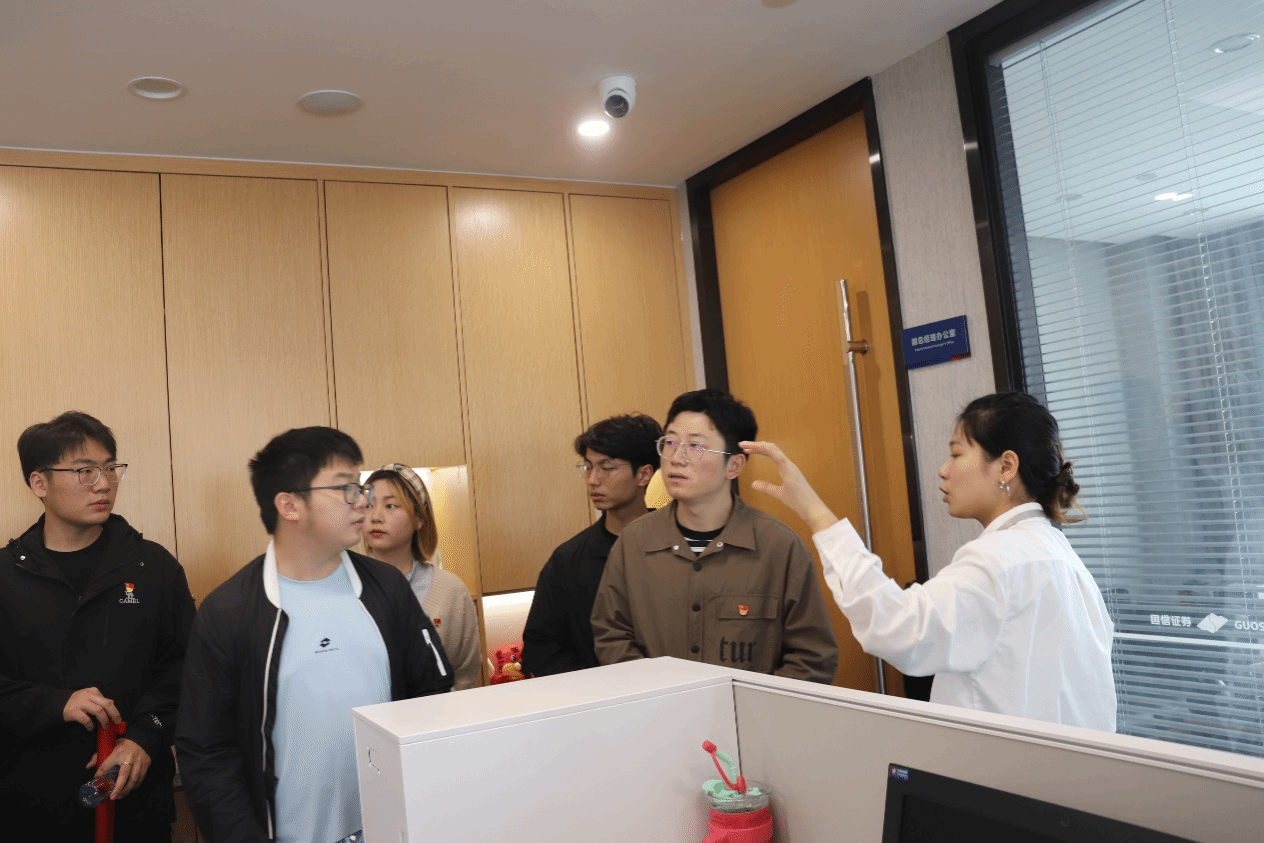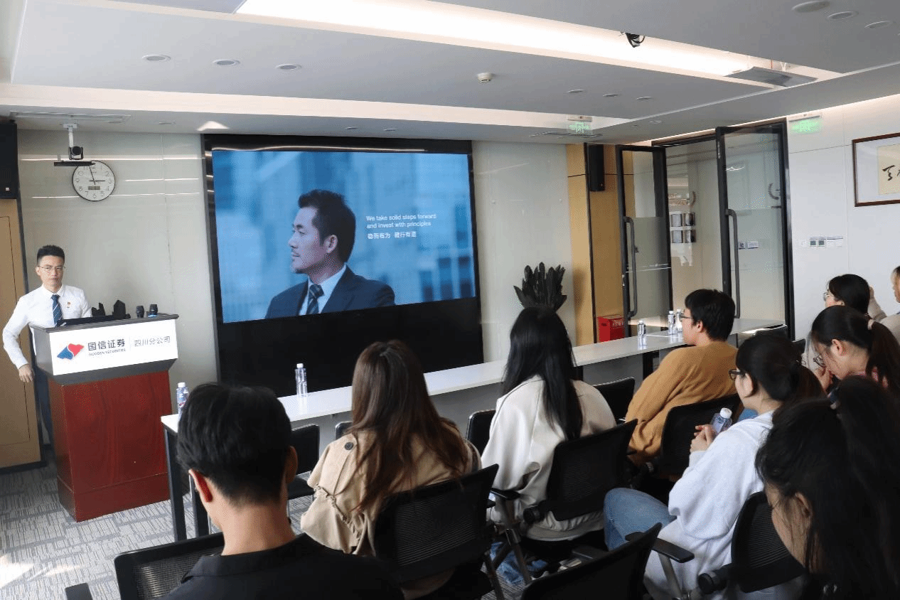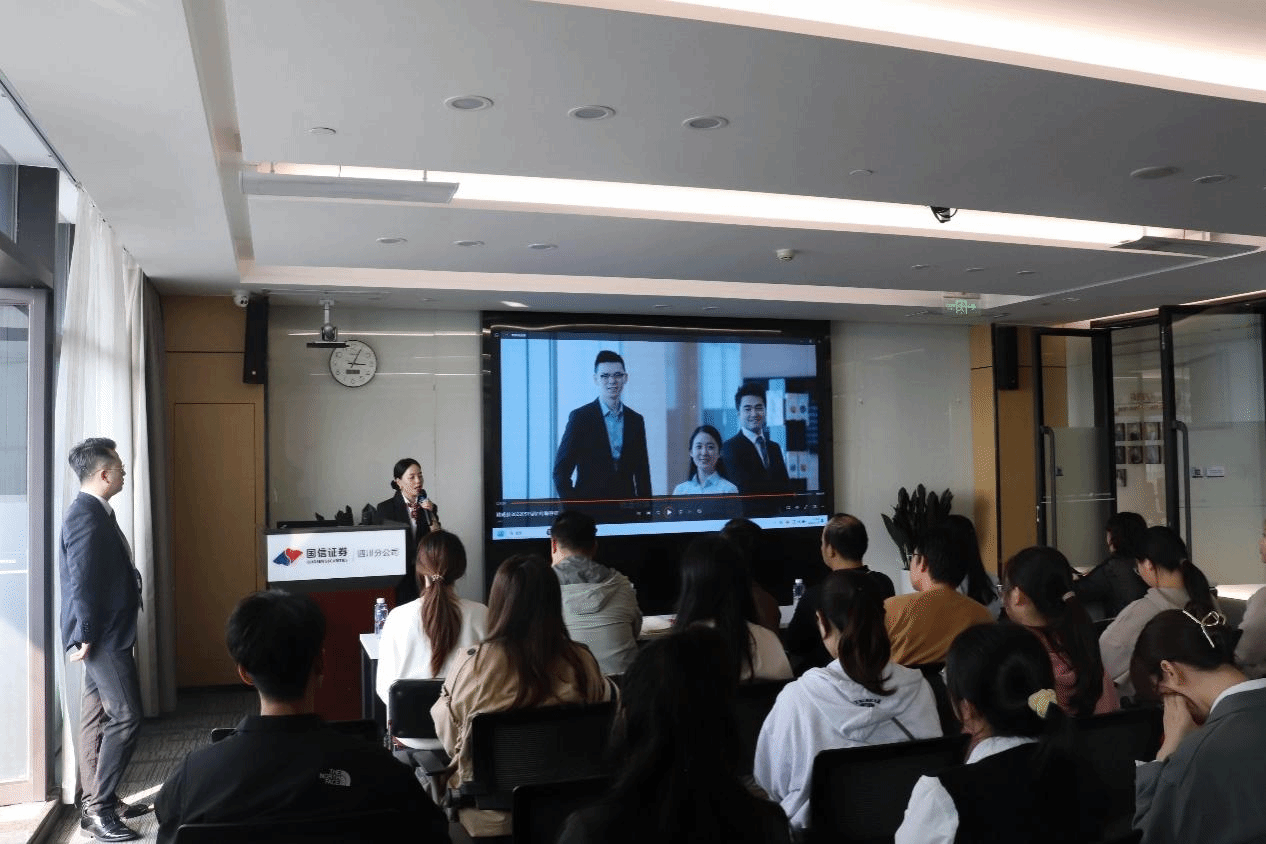 抵达后,国信证券的领导和工作人员热情接待,并对冰球官网师生的到来表示热烈欢迎。随后,大家在工作人员的带领下进入会议室落座,国信证券理财三部的周圆皓经理简要介绍了此次活动的流程,本次党建共建活动正式开始。