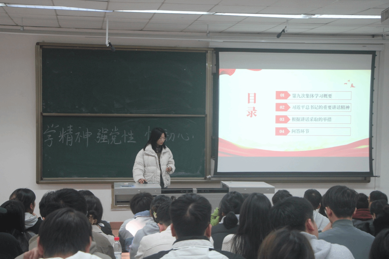 首先,本科第三党支部党员王梦瑶带领大家深入学习领会习近平总书记在中央政治局第九次集体学习时的重要讲话精神。习近平总书记的重要讲话,深刻阐释了新时代党的民族工作面临的新形势新任务新挑战,明确提出了进一步铸牢中华民族共同体意识、推进新时代党的民族工作高质量发展的五项具体要求,为党支部聚焦铸牢中华民族共同体意识主线,做好各项工作指明了前进方向和根本遵循。