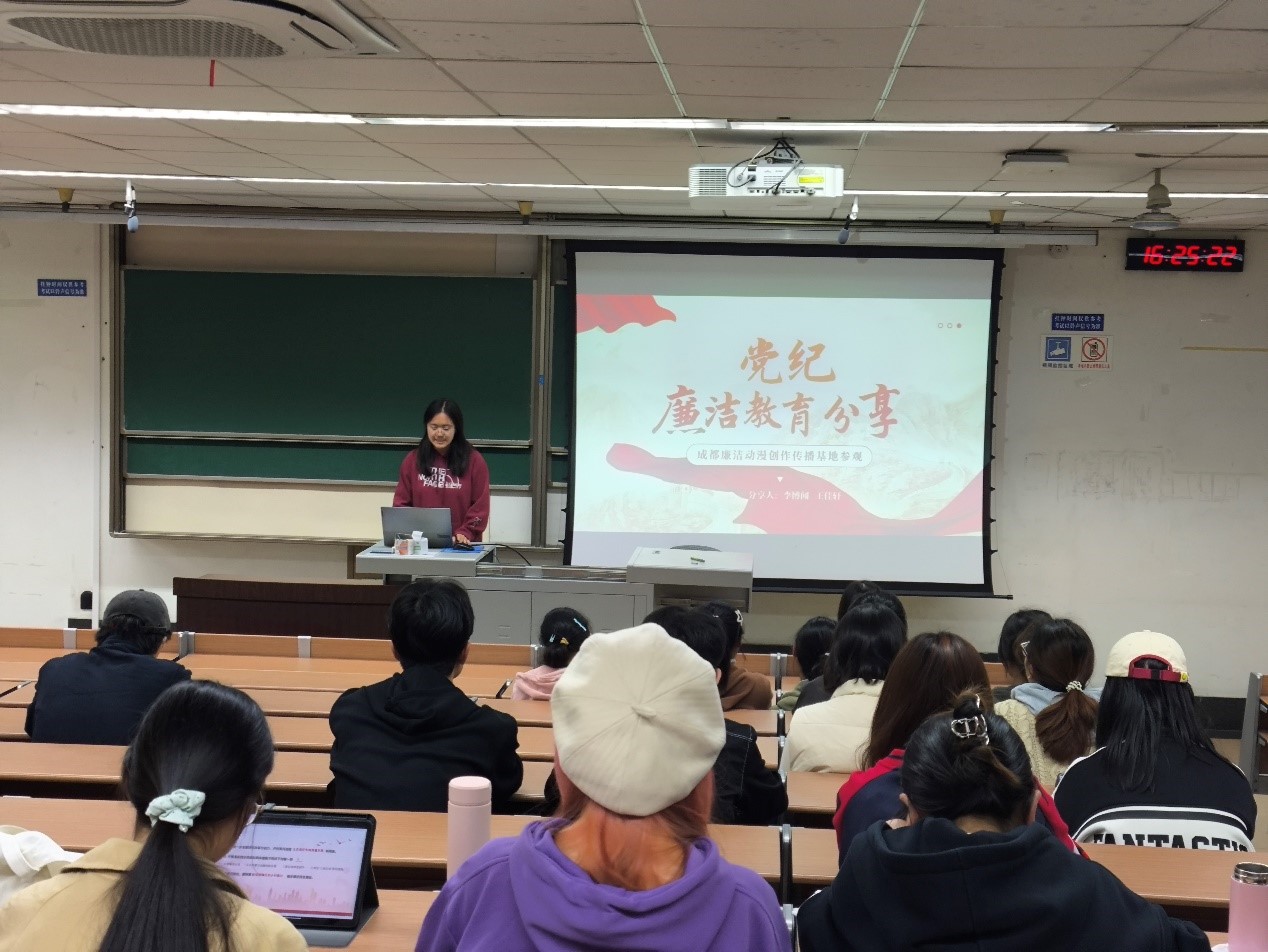 第三部分,支部成员分享了自己对于系列党纪学习教育的感悟。余思蕊同学表示,她深刻体会到了在大学生发展道路上会遇到许多诱惑,我们必须擦亮双眼,严守纪律红线。同时,何佳同学在参观完成都廉洁动漫创作基地后表示,廉洁不仅是一种道德要求,更是一种精神追求,作为大学生党员我们要始终保持公正、廉洁的态度和行为,为社会的和谐稳定和繁荣发展贡献自己的力量。