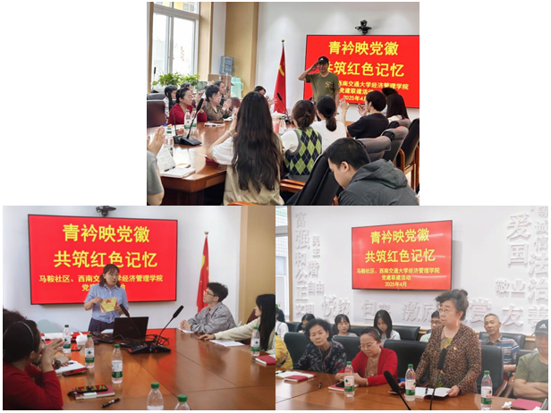 为赓续红色基因,同时搭建高校与社区“资源共享、人才共育”平台,促进高校与社区的合作与交流,2025年4月24日,冰球突破豪华版官方网站经济学硕士第一党支部、工业工程与管理专硕第一党支部、管理科学与工程硕士第一党支部的党员及入党积极分子走进马鞍社区,与马鞍社区党委联合举办“青衿映党徽,共筑红色记忆”党建共建活动,活动在金牛区驷马桥街道马鞍小学一楼会议室顺利开展。